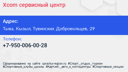 Xcom, сервисный центр по адресу Тыва, Кызыл, Тувинских Добровольцев, 29 в дальнейшем Организация, размещена в следующих категориях: