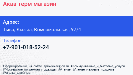 Аква-терм, магазин по адресу Тыва, Кызыл, Комсомольская, 97/4 в дальнейшем Организация, размещена в следующих категориях: