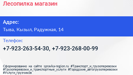 Лесопилка, магазин по адресу Тыва, Кызыл, Радужная, 14 в дальнейшем Организация, размещена в следующих категориях: