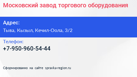 Московский завод торгового оборудования по адресу Тыва, Кызыл, Кечил-Оола, 3/2 в дальнейшем Организация, размещена в следующих категориях: