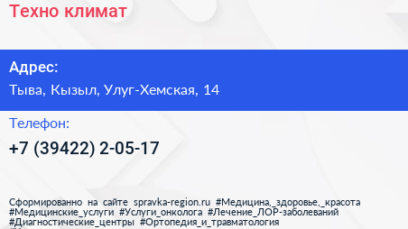 Техно-климат по адресу Тыва, Кызыл, Улуг-Хемская, 14 в дальнейшем Организация, размещена в следующих категориях: