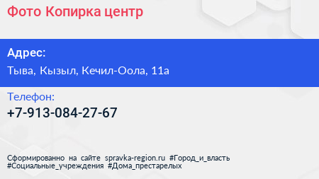 Фото Копирка, центр по адресу Тыва, Кызыл, Кечил-Оола, 11а в дальнейшем Организация, размещена в следующих категориях: