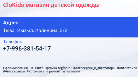 CloKids, магазин детской одежды по адресу Тыва, Кызыл, Калинина, 3/2 в дальнейшем Организация, размещена в следующих категориях: