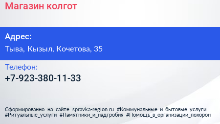 Магазин колгот по адресу Тыва, Кызыл, Кочетова, 35 в дальнейшем Организация, размещена в следующих категориях: