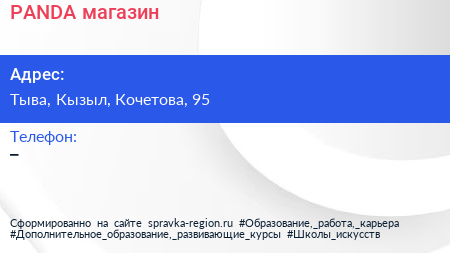 PANDA, магазин по адресу Тыва, Кызыл, Кочетова, 95 в дальнейшем Организация, размещена в следующих категориях: