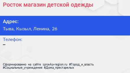 Росток, магазин детской одежды по адресу Тыва, Кызыл, Ленина, 26 в дальнейшем Организация, размещена в следующих категориях: