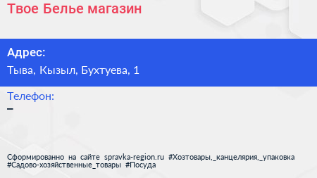 Твое Белье, магазин по адресу Тыва, Кызыл, Бухтуева, 1 в дальнейшем Организация, размещена в следующих категориях: