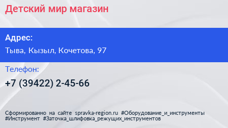 Детский мир, магазин по адресу Тыва, Кызыл, Кочетова, 97 в дальнейшем Организация, размещена в следующих категориях: