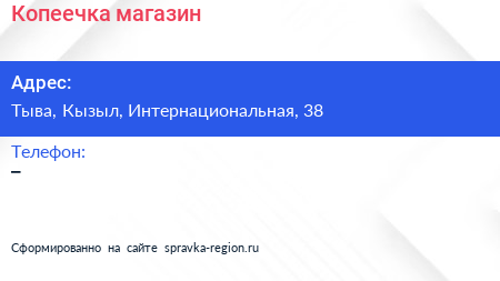 Копеечка, магазин по адресу Тыва, Кызыл, Интернациональная, 38 в дальнейшем Организация, размещена в следующих категориях: