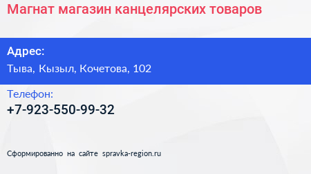 Магнат, магазин канцелярских товаров по адресу Тыва, Кызыл, Кочетова, 102 в дальнейшем Организация, размещена в следующих категориях: