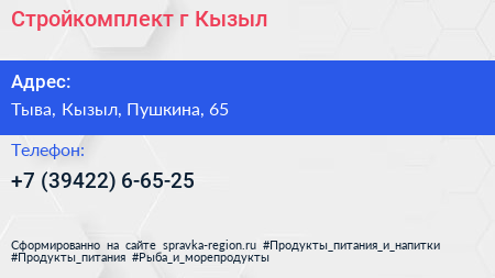 Стройкомплект, г. Кызыл по адресу Тыва, Кызыл, Пушкина, 65 в дальнейшем Организация, размещена в следующих категориях: