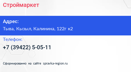 Строймаркет по адресу Тыва, Кызыл, Калинина, 122г к2 в дальнейшем Организация, размещена в следующих категориях: