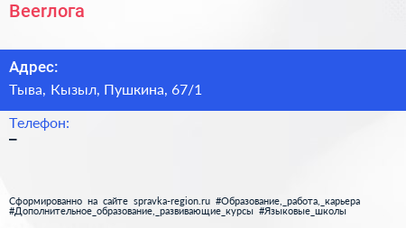 Beerлога по адресу Тыва, Кызыл, Пушкина, 67/1 в дальнейшем Организация, размещена в следующих категориях:
