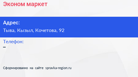Эконом-маркет по адресу Тыва, Кызыл, Кочетова, 92 в дальнейшем Организация, размещена в следующих категориях: