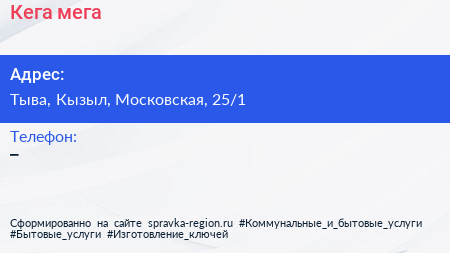 Кега-мега по адресу Тыва, Кызыл, Московская, 25/1 в дальнейшем Организация, размещена в следующих категориях: