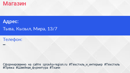 Магазин по адресу Тыва, Кызыл, Мира, 13/7 в дальнейшем Организация, размещена в следующих категориях: