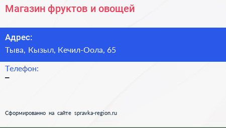 Магазин фруктов и овощей по адресу Тыва, Кызыл, Кечил-Оола, 65 в дальнейшем Организация, размещена в следующих категориях: