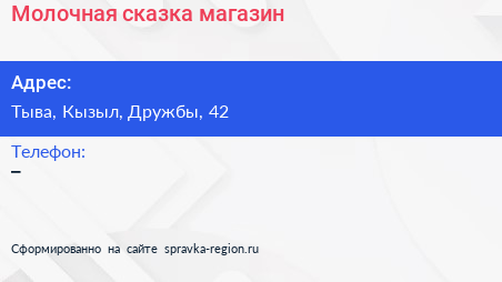 Молочная сказка, магазин по адресу Тыва, Кызыл, Дружбы, 42 в дальнейшем Организация, размещена в следующих категориях: