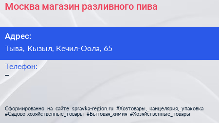 Москва, магазин разливного пива по адресу Тыва, Кызыл, Кечил-Оола, 65 в дальнейшем Организация, размещена в следующих категориях: