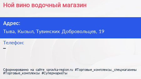 Ной, вино-водочный магазин по адресу Тыва, Кызыл, Тувинских Добровольцев, 19 в дальнейшем Организация, размещена в следующих категориях: