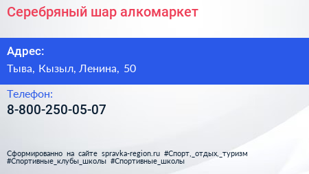 Серебряный шар, алкомаркет по адресу Тыва, Кызыл, Ленина, 50 в дальнейшем Организация, размещена в следующих категориях: