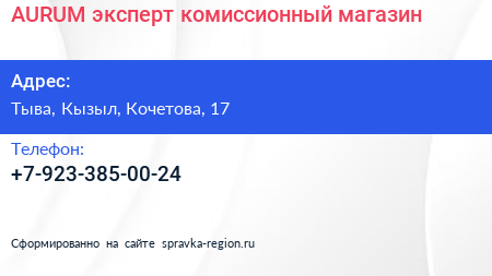 AURUM эксперт, комиссионный магазин по адресу Тыва, Кызыл, Кочетова, 17 в дальнейшем Организация, размещена в следующих категориях: