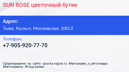 SUN ROSE, цветочный бутик по адресу Тыва, Кызыл, Московская, 100/2 в дальнейшем Организация, размещена в следующих категориях: