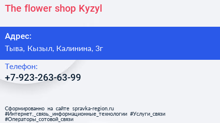 The flower shop Kyzyl по адресу Тыва, Кызыл, Калинина, 3г в дальнейшем Организация, размещена в следующих категориях: