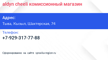 aldyn-cheeli, комиссионный магазин по адресу Тыва, Кызыл, Шахтерская, 74 в дальнейшем Организация, размещена в следующих категориях: