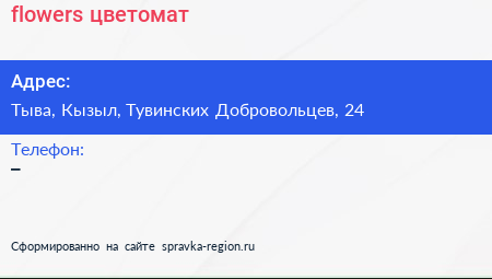 flowers, цветомат по адресу Тыва, Кызыл, Тувинских Добровольцев, 24 в дальнейшем Организация, размещена в следующих категориях: