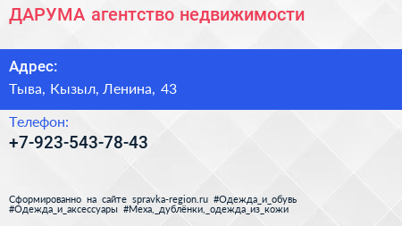 ДАРУМА, агентство недвижимости по адресу Тыва, Кызыл, Ленина, 43 в дальнейшем Организация, размещена в следующих категориях: