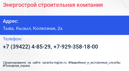 Энергострой, строительная компания по адресу Тыва, Кызыл, Колхозная, 2а в дальнейшем Организация, размещена в следующих категориях: