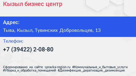 Кызыл, бизнес-центр по адресу Тыва, Кызыл, Тувинских Добровольцев, 13 в дальнейшем Организация, размещена в следующих категориях: