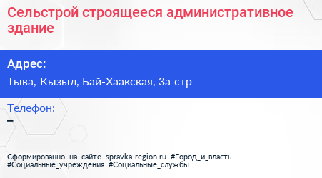 Сельстрой, строящееся административное здание по адресу Тыва, Кызыл, Бай-Хаакская, 3а стр в дальнейшем Организация, размещена в следующих категориях: