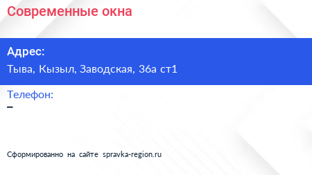 Современные окна по адресу Тыва, Кызыл, Заводская, 36а ст1 в дальнейшем Организация, размещена в следующих категориях: