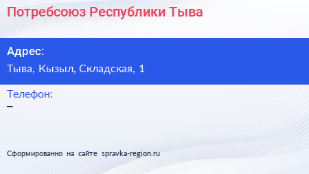 Потребсоюз Республики Тыва по адресу Тыва, Кызыл, Складская, 1 в дальнейшем Организация, размещена в следующих категориях: