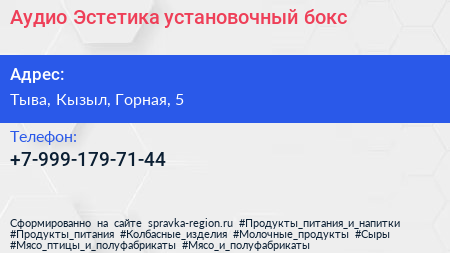 Аудио Эстетика, установочный бокс по адресу Тыва, Кызыл, Горная, 5 в дальнейшем Организация, размещена в следующих категориях: