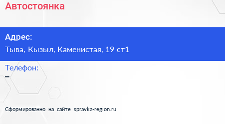 Автостоянка по адресу Тыва, Кызыл, Каменистая, 19 ст1 в дальнейшем Организация, размещена в следующих категориях: