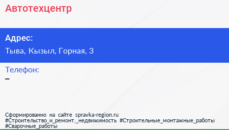 Автотехцентр по адресу Тыва, Кызыл, Горная, 3 в дальнейшем Организация, размещена в следующих категориях:
