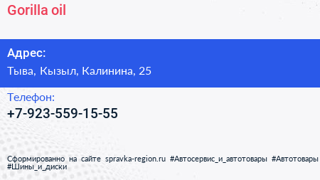 Gorilla oil по адресу Тыва, Кызыл, Калинина, 25 в дальнейшем Организация, размещена в следующих категориях: