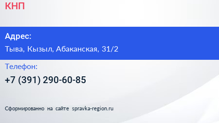 КНП по адресу Тыва, Кызыл, Абаканская, 31/2 в дальнейшем Организация, размещена в следующих категориях: