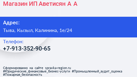 Магазин, ИП Аветисян А.А. по адресу Тыва, Кызыл, Калинина, 1е/24 в дальнейшем Организация, размещена в следующих категориях: