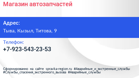 Магазин автозапчастей по адресу Тыва, Кызыл, Титова, 9 в дальнейшем Организация, размещена в следующих категориях: