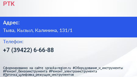 РТК по адресу Тыва, Кызыл, Калинина, 131/1 в дальнейшем Организация, размещена в следующих категориях: