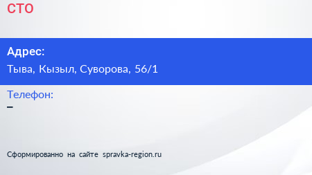 СТО по адресу Тыва, Кызыл, Суворова, 56/1 в дальнейшем Организация, размещена в следующих категориях: