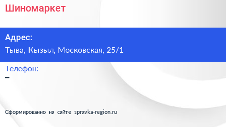 Шиномаркет по адресу Тыва, Кызыл, Московская, 25/1 в дальнейшем Организация, размещена в следующих категориях: