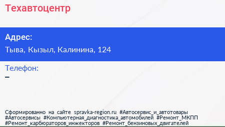 Техавтоцентр по адресу Тыва, Кызыл, Калинина, 124 в дальнейшем Организация, размещена в следующих категориях: