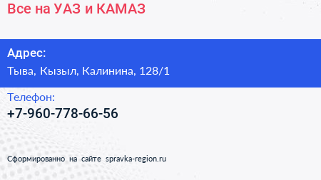 Все на УАЗ и КАМАЗ по адресу Тыва, Кызыл, Калинина, 128/1 в дальнейшем Организация, размещена в следующих категориях: