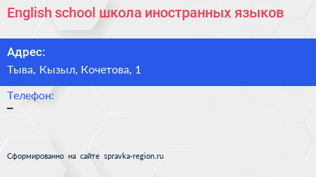 English school, школа иностранных языков по адресу Тыва, Кызыл, Кочетова, 1 в дальнейшем Организация, размещена в следующих категориях: