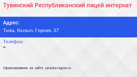 Тувинский Республиканский лицей-интернат по адресу Тыва, Кызыл, Горная, 37 в дальнейшем Организация, размещена в следующих категориях:
